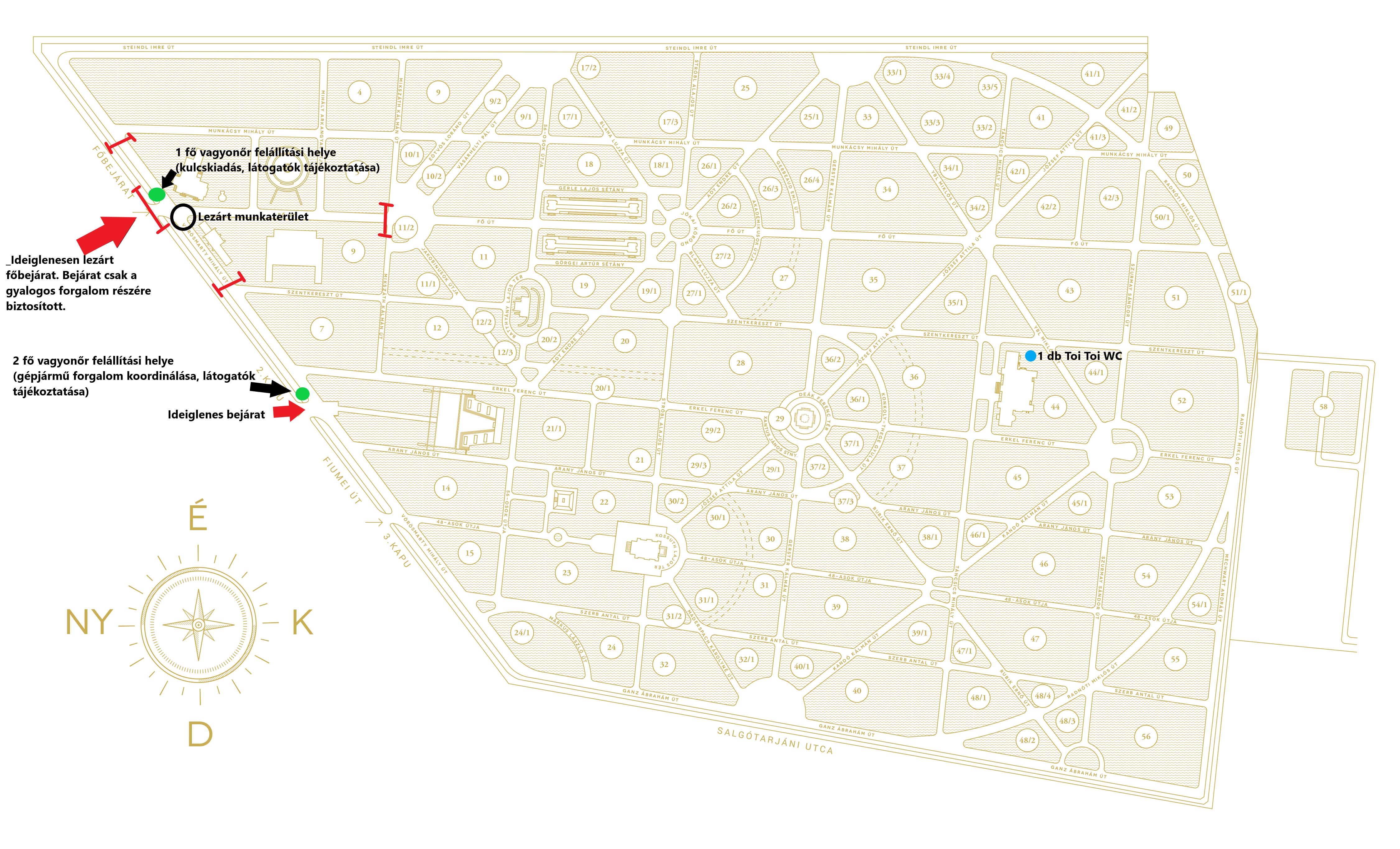 Tájékoztatjuk Önöket, hogy 2026. január 22-től ideiglenesen a Fiumei úti sírkert gépjárművel kizárólag a 2-es kapu felől közelíthető meg. A gyalogos forgalom a főbejáraton továbbra is biztosított, a szalagkordonnal kijelölt útvonalon.