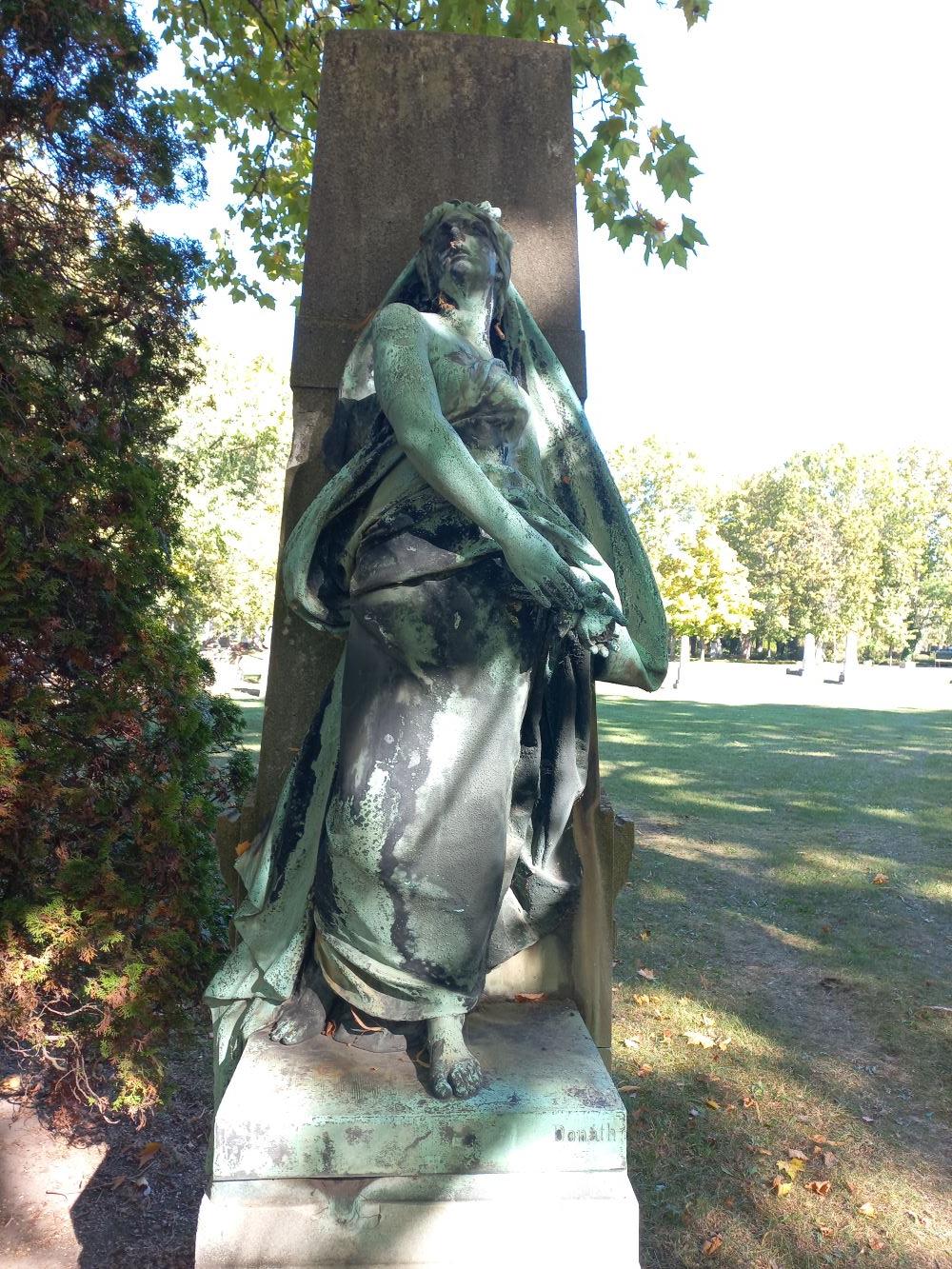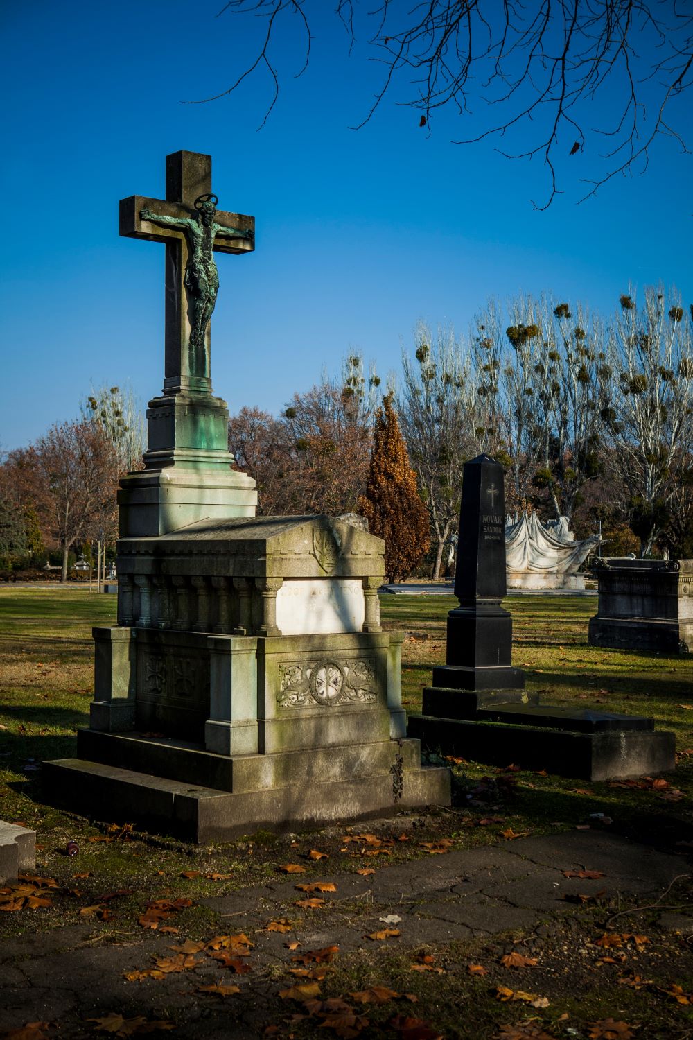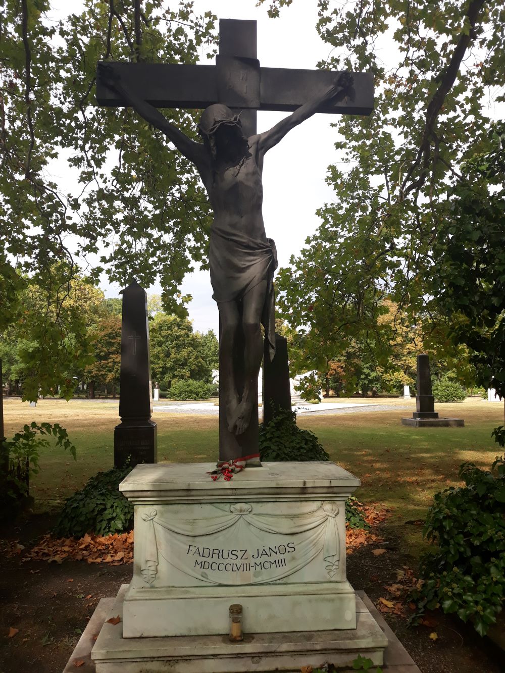 The cemetery has another copy of Crucifixion on another grave: a cast of the Fadrusz cross found its way to the family tomb of the ironworks owner Heinrich.