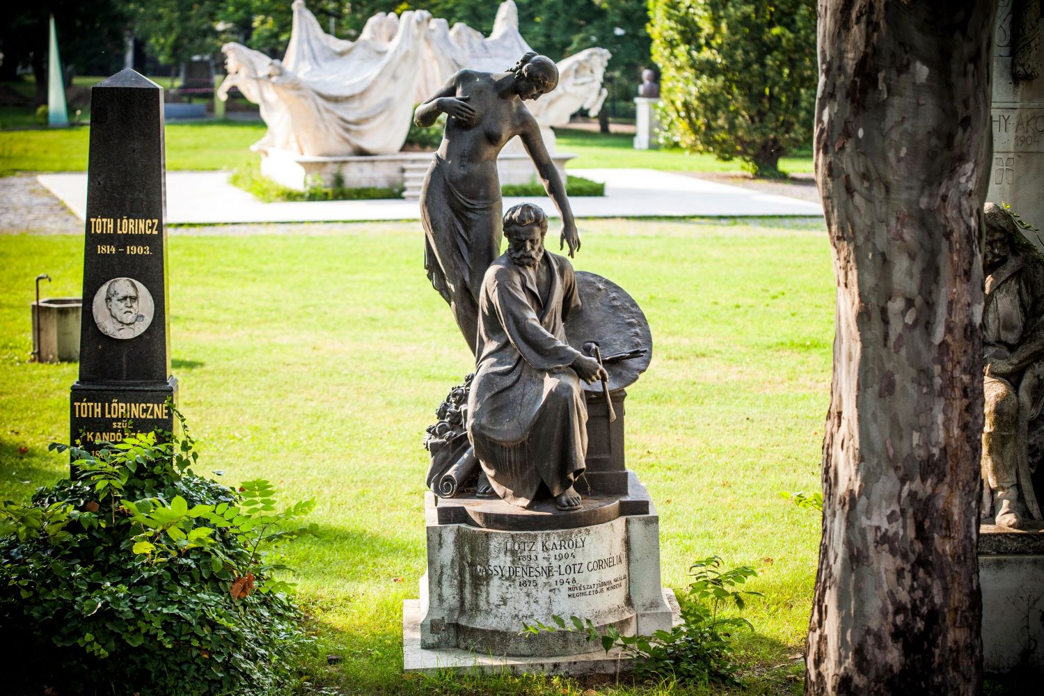 János Pásztor was commissioned to make the funerary statue for Károly Lotz. The bronze statue was unveiled in 1930.