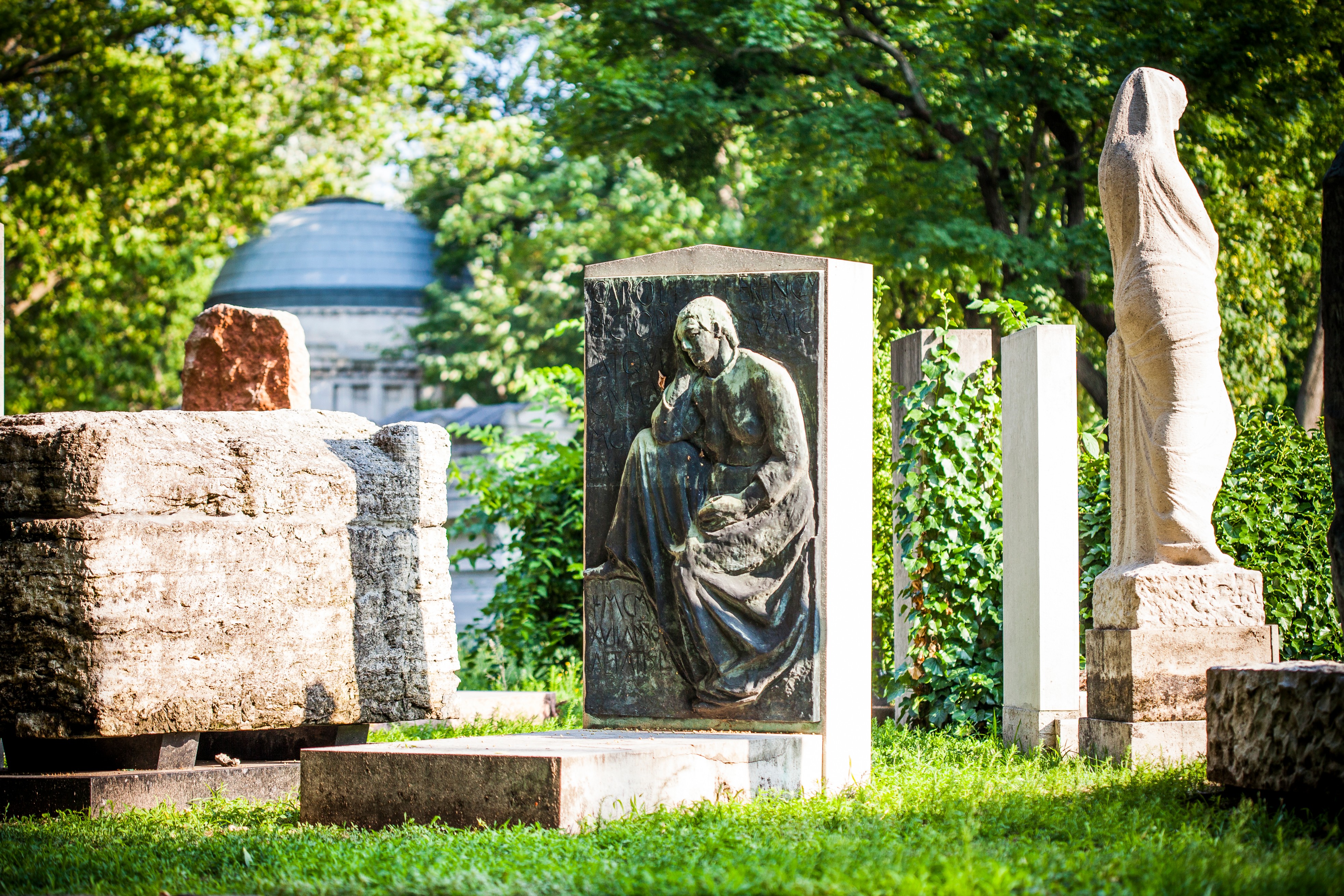 The ornate stone sarcophagus marks the former grave of Ignác Semmelweis, the famous Hungarian doctor known as ‘the saviour of mothers’. This was his fourth burial place. He was first interred in the Schmelz cemetery, then his earthly remains were transferred to the crypt of his wife’s family, the Whaltiers (right-hand wall tombs 109). The second exhumation of the doctor took place on 24 April 1894, when an ornate tomb was designated for him in plot 21 of the cemetery, for which a highly worked sarcophagus made by Albert Schickedanz and Fülöp Herczog was commissioned. From there, he was reburied in the ceremonial plots established in 1929 and the ornate sarcophagus was positioned above his remains.