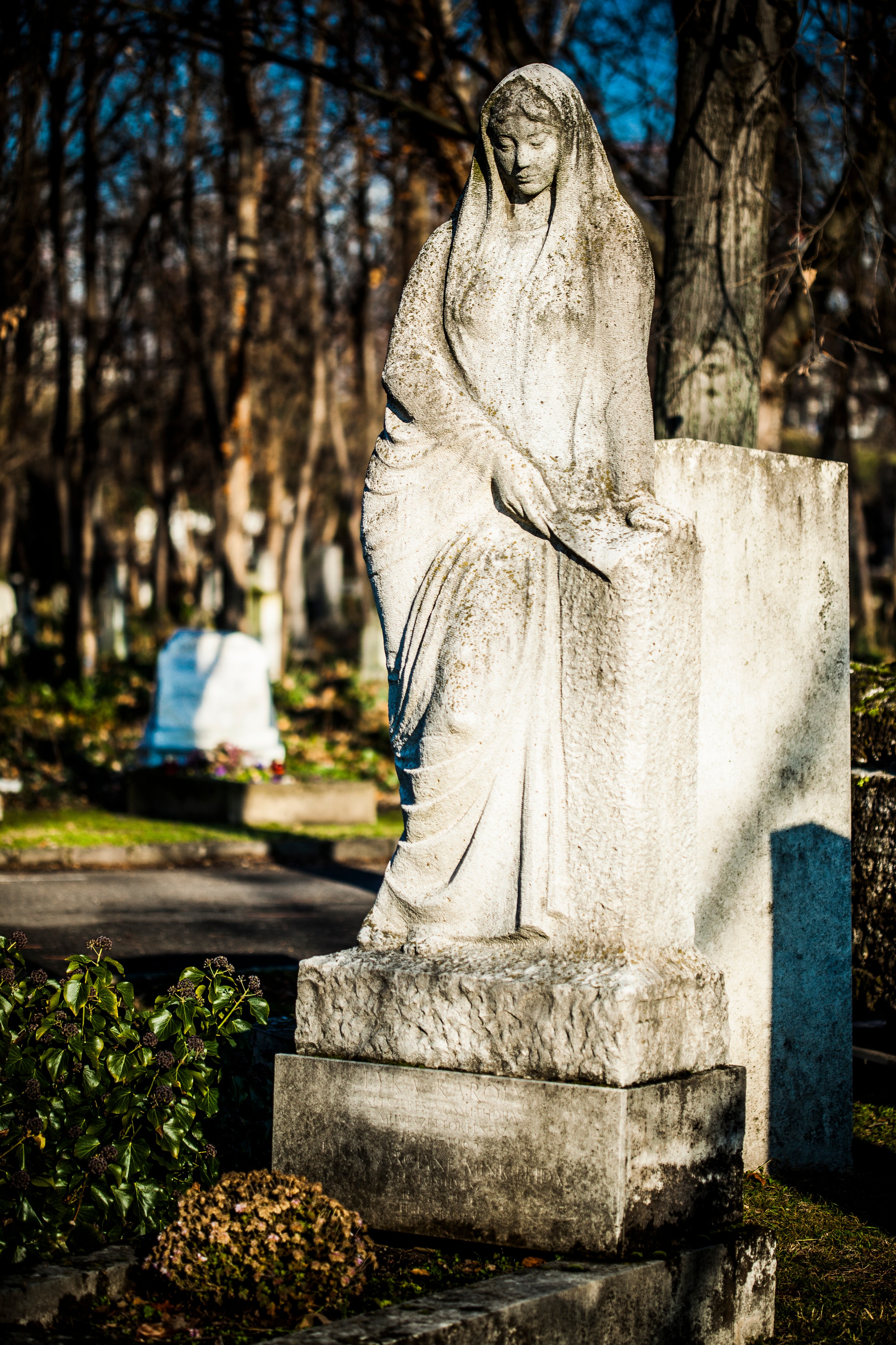 Female figures were central to the funerary art of Ferenc Medgyessy. They are shown in contrapposto pose, leaning on a stone or column, in diaphanous clothing evoking an image of Antiquity emphasizing their feminine rounded forms. These tombs bore considerable resemblance to each other, yet they were still compositions with varied solutions.