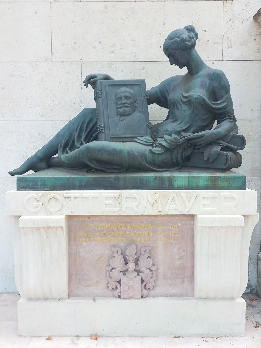 Együttes munkájuk eredménye a magyar könyvkötészet megteremtőjének és egyik legnagyobb alakjának síremléke. A könyvkötészetéről híres Gottermayer Nándor díszkötésű művei mai is keresett darabok, a 19-20. század fordulójának legmívesebb magyar könyvborításai kerültek ki műhelyéből. A Gottermayer Nándor Könyvkötői Műintézet saját rajzolói tervezték a mindennapi forgalomba kerülő nagy példányszámú könyvek borításait csakúgy, mint a reprezentatív célokat szolgáló díszes kiadványokét. A könyvkötő síremlékének szoborkompozíciója az elhunyt sikerekben gazdag hivatására utal: a könnyed lepelbe bújtatott fekvő női alak bal kezében az örök dicsőséget jelképező babérágat tartva két vaskos könyvre támaszkodik, míg jobb kezével egy könyvet mutat, amelynek díszes borítóján az elhunyt portréja látható.