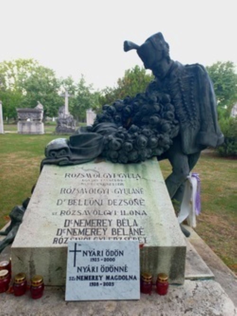 Ligeti Miklós a sírszobrot eredetileg márványba faragva képzelte el, végül bronzból öntött verzióban készült el.