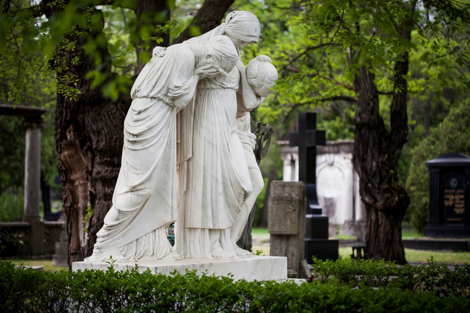 The triple-figure composition brings to mind the ‘three Graces’, which are a recurrent theme in fine arts since the earliest times. The innumerable images of the Graces (in Greek, Charis) are shown in the form of three female figures, allegories of beauty, fertility, charm, humour, that is, a joyful earthly existence. Here, too, there are three funerary figures, just like the Graces of mythology, but now they are not proclaiming the beauties and charity of earthly existence but instead the eternal pain felt over the collapsed world. These female figures are allegories of mourning and bereavement. While shaping the ensemble, the artist returned to the style of Classicism, and in their combination he evokes Canova’s Three Graces. Construction of Pál Elek’s tomb was postponed for years due to the outbreak of the First World War and it was finalized only after the war. The Szinyei Merse Pál Society recognized the Ligeti work with a prize in 1922. The three female figures clasping each other – of whom one is a young single girl, the second a wife and the third a mother – are not only a symbol of the family mourning for their lost one but can also be seen as an allegory of the consequences of war, irretrievable losses, national grief.