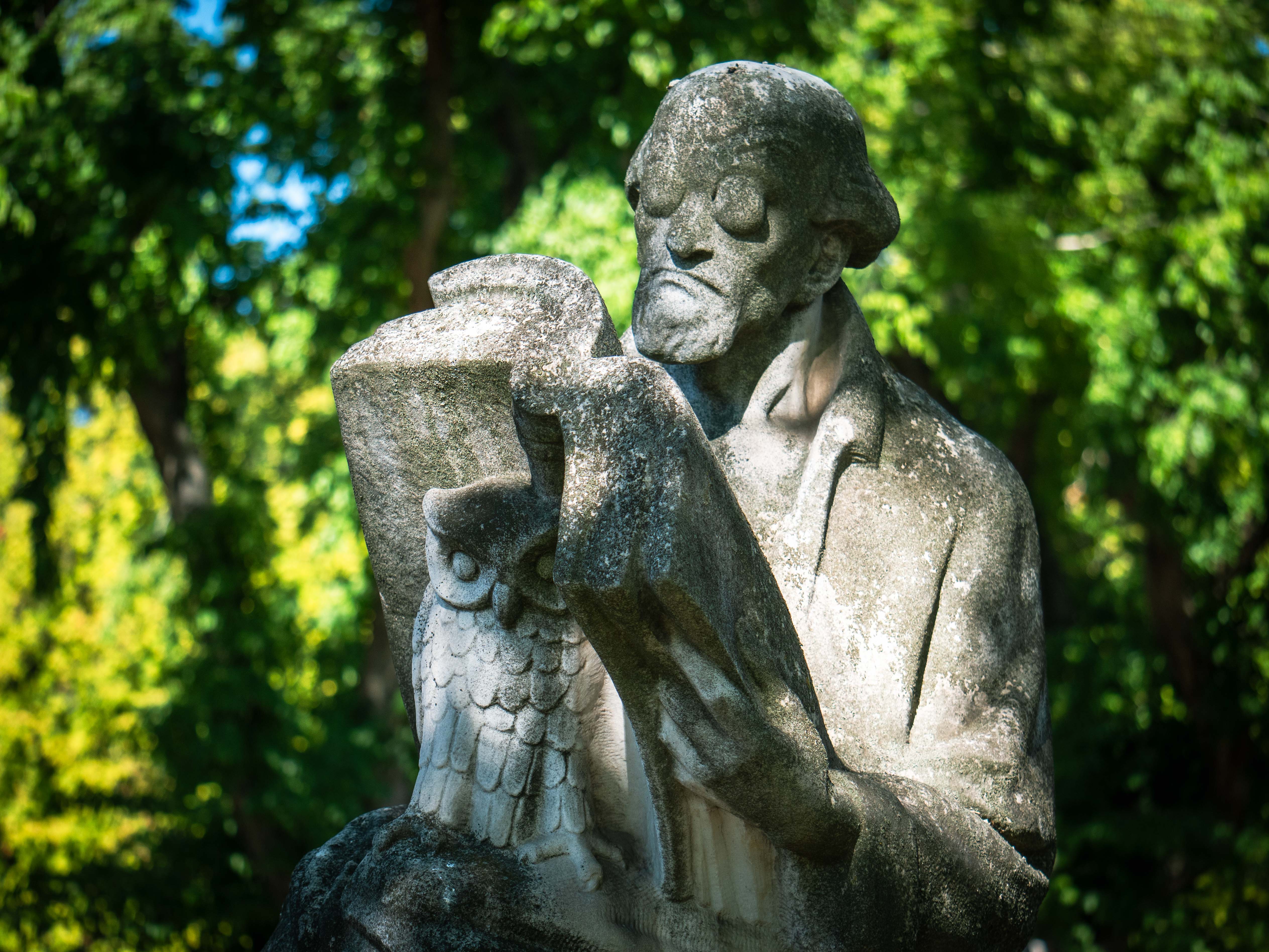 The statue of a young female standing over a grave was made in memory of a girl who died at the age of 18.