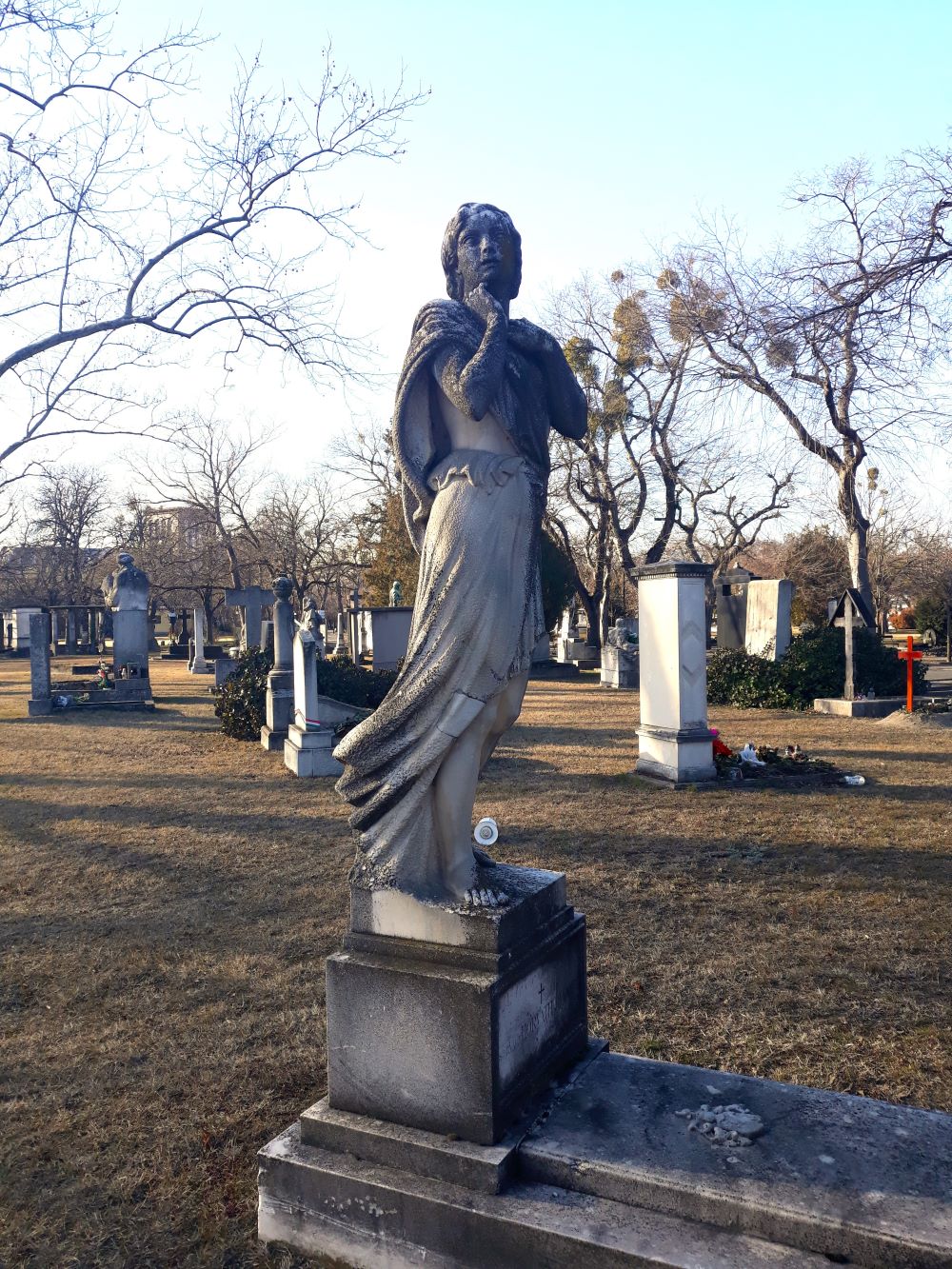 A sírhant fölött álló fiatal nő alakját megformáló szobor egy 18 éves korában elhunyt lány emlékét idézi fel.