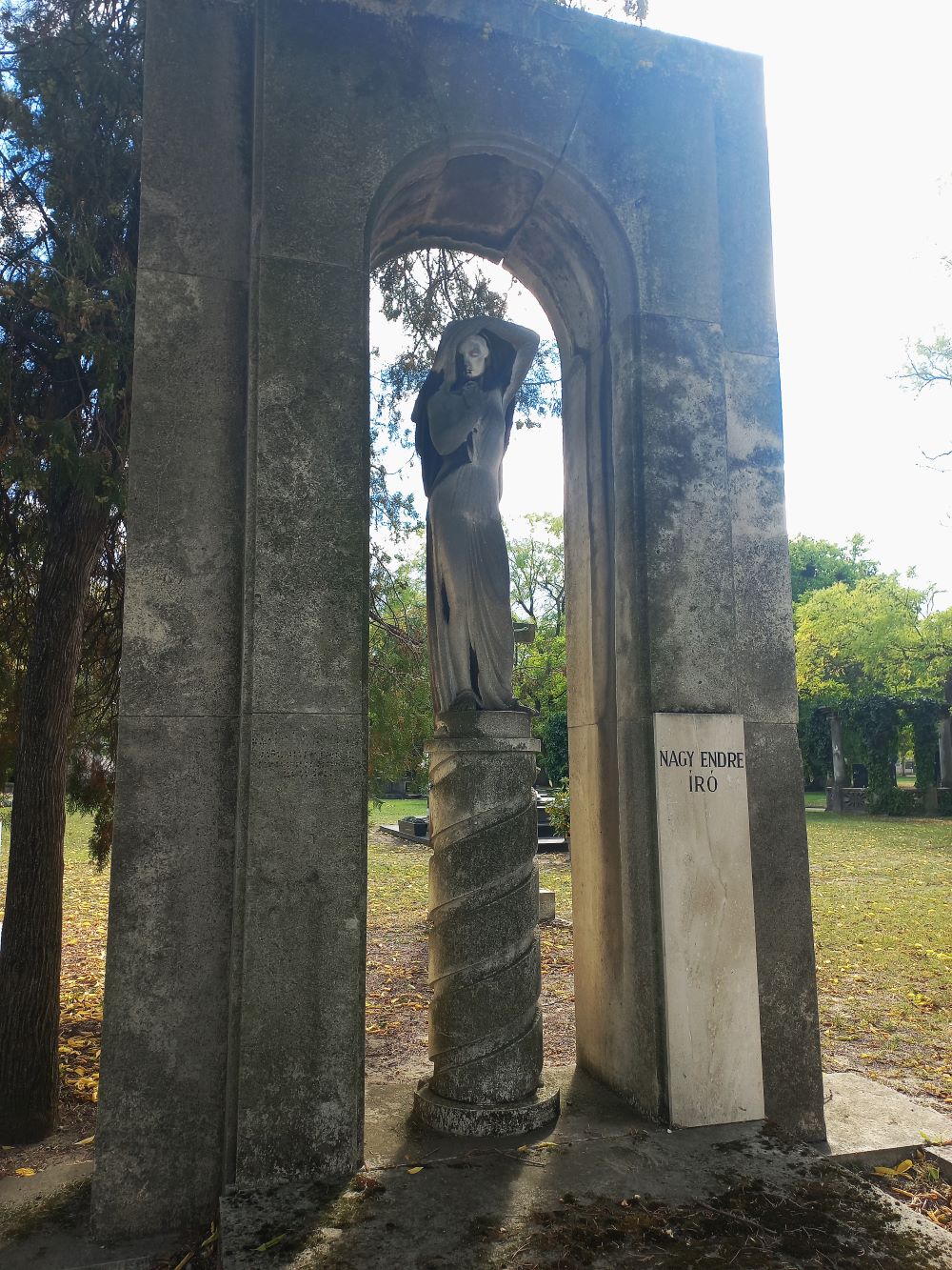 Endre Nagy was a major figure in theatre history, the founder of Hungarian cabaret and the art of the compere. The family had the statue on the grave made for their son who died aged 29 and is buried in the family crypt. Endre Nagy, who lived for many years in Gödöllő, met the sculptor Ferenc Sidló who at that time was working in the local artist colony, and later on he commissioned the artist with the work for the grave of his son.