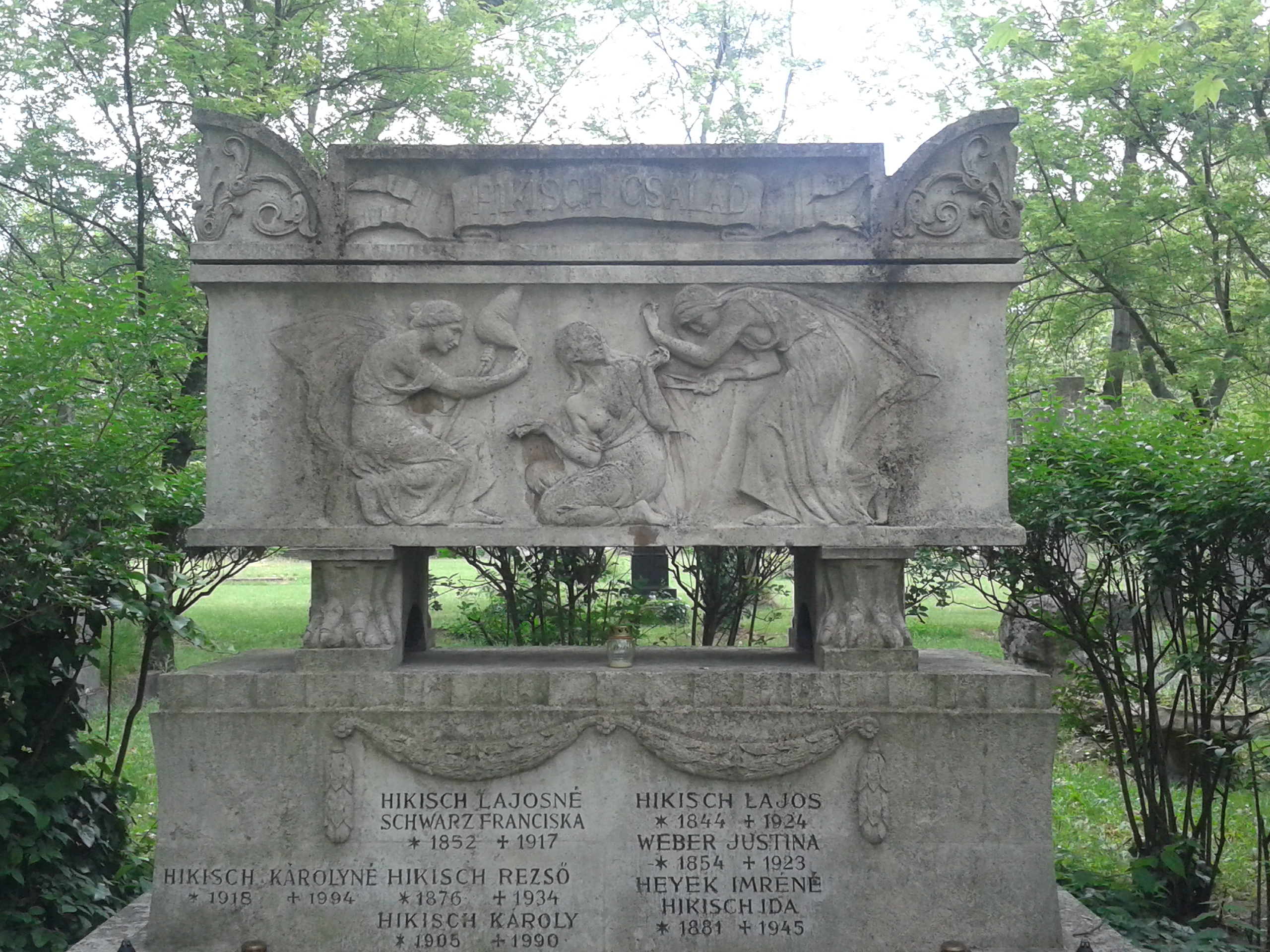 Hikisch Rezső építész 14 jelenleg is látható síremléket tervezett a Fiumei úti sírkertben, különböző szobrászokkal együttműködve, többek között a Neruda családét, Klösz Györgyét és a Gutmann család mauzóleumát. Ezért is tartották őt a temetőépítészet specialistájának. Szülei kriptájának síremlékét is ő tervezte, amelybe később őt magát is eltemették 1934-ben bekövetkezett halálakor.