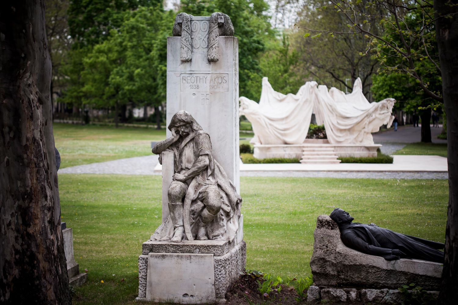 János Pásztor was commissioned to make the funerary statue for Károly Lotz. The bronze statue was unveiled in 1930.